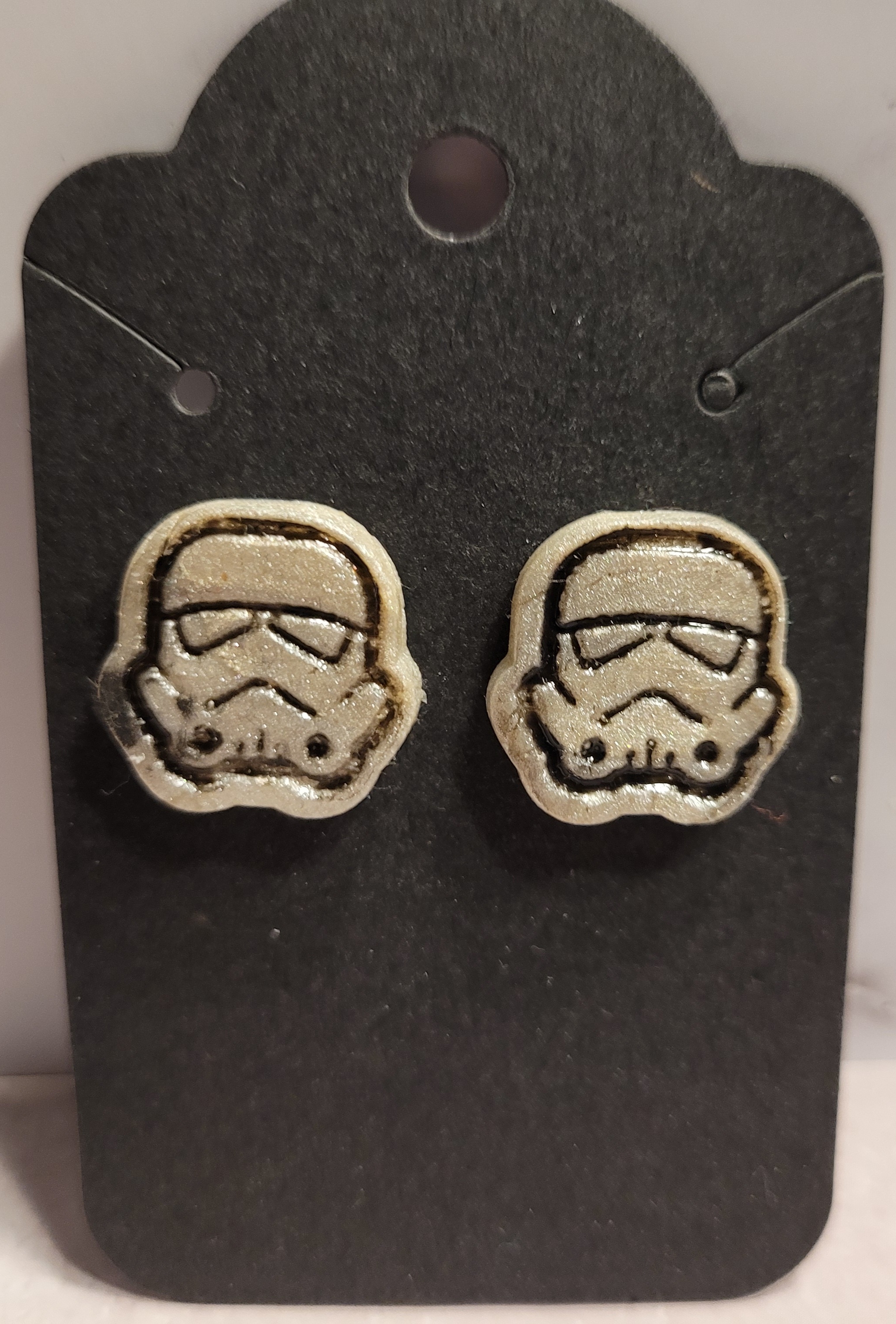 Stud earrings based off Storm Troopers from Star Wars. Made with polymer clay, acrylic paint and nickel free metal findings.