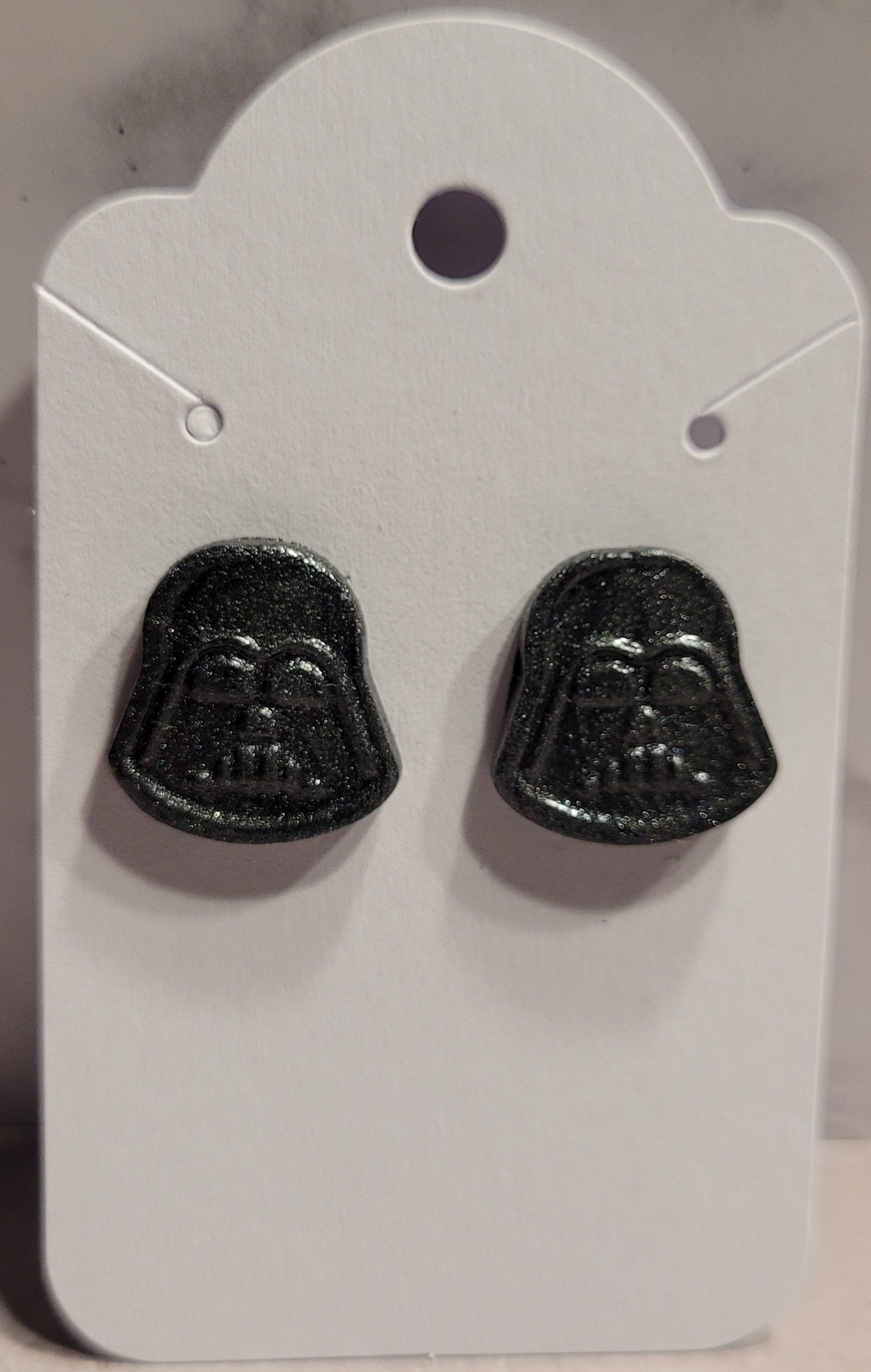 Stud earrings based off Darth Vader from Star Wars. Made with polymer clay and nickel free metal findings.