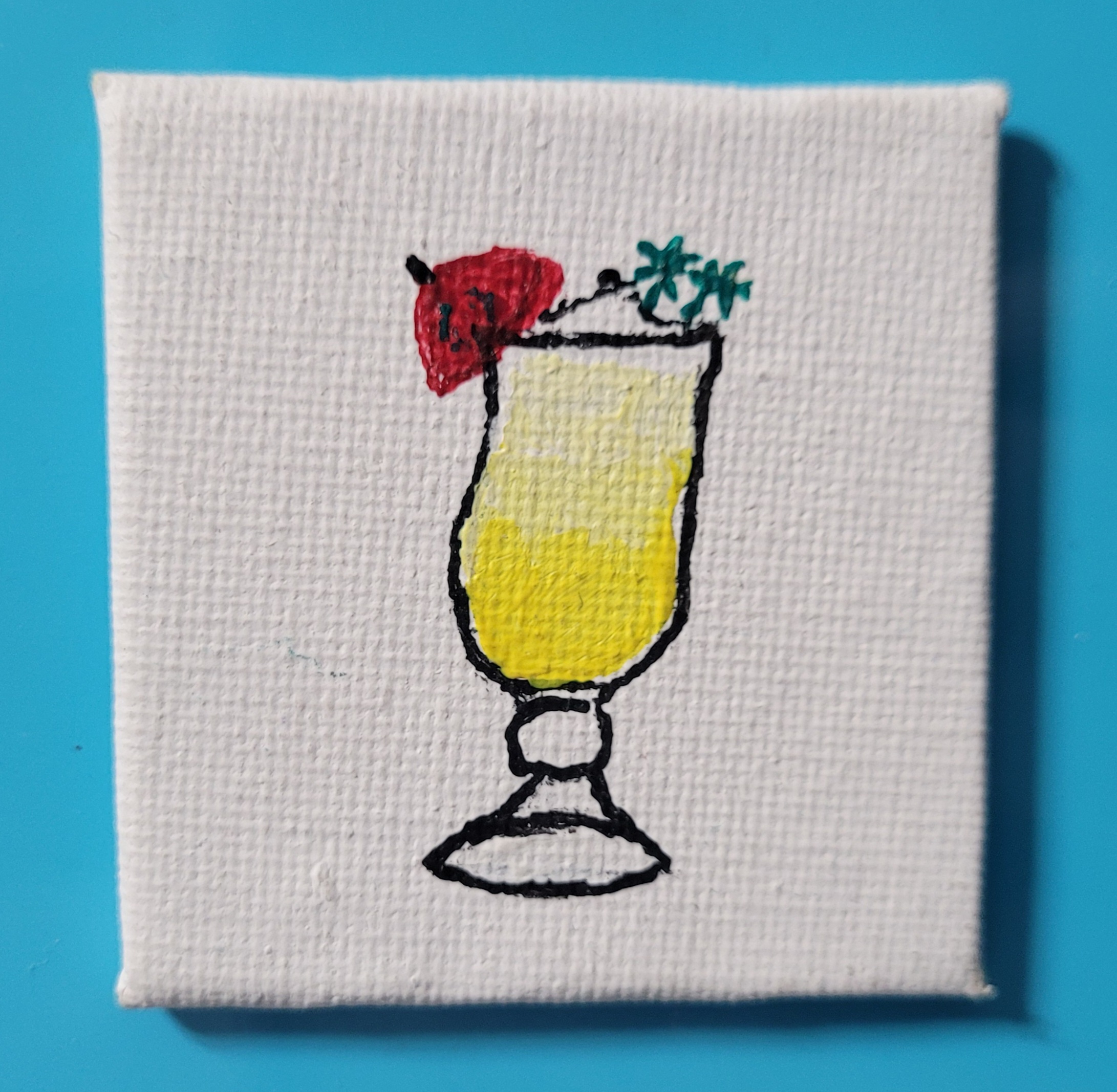 Painting of a Pina Colada. Hand painted with acrylic paint on a 2x2 canvas with magnetic backing.