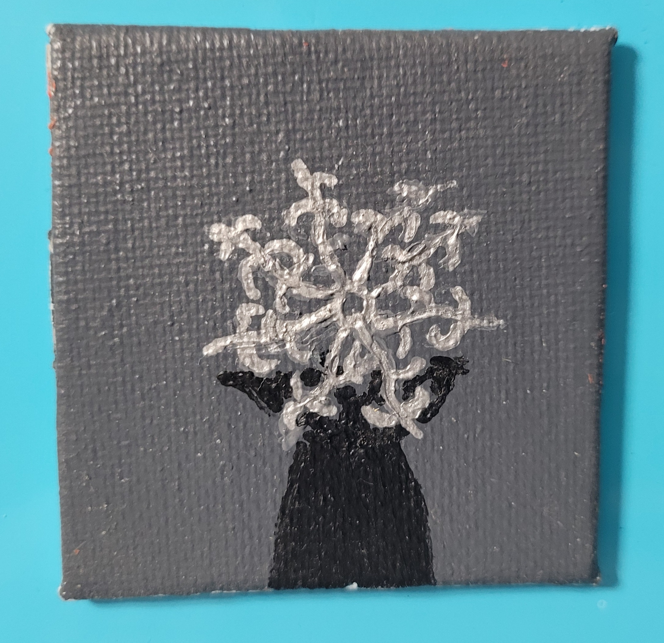 Fanart painting of a character from a popular fantasy series. Hand painted with acrylic paint on a 2x2 canvas with magnetic backing.