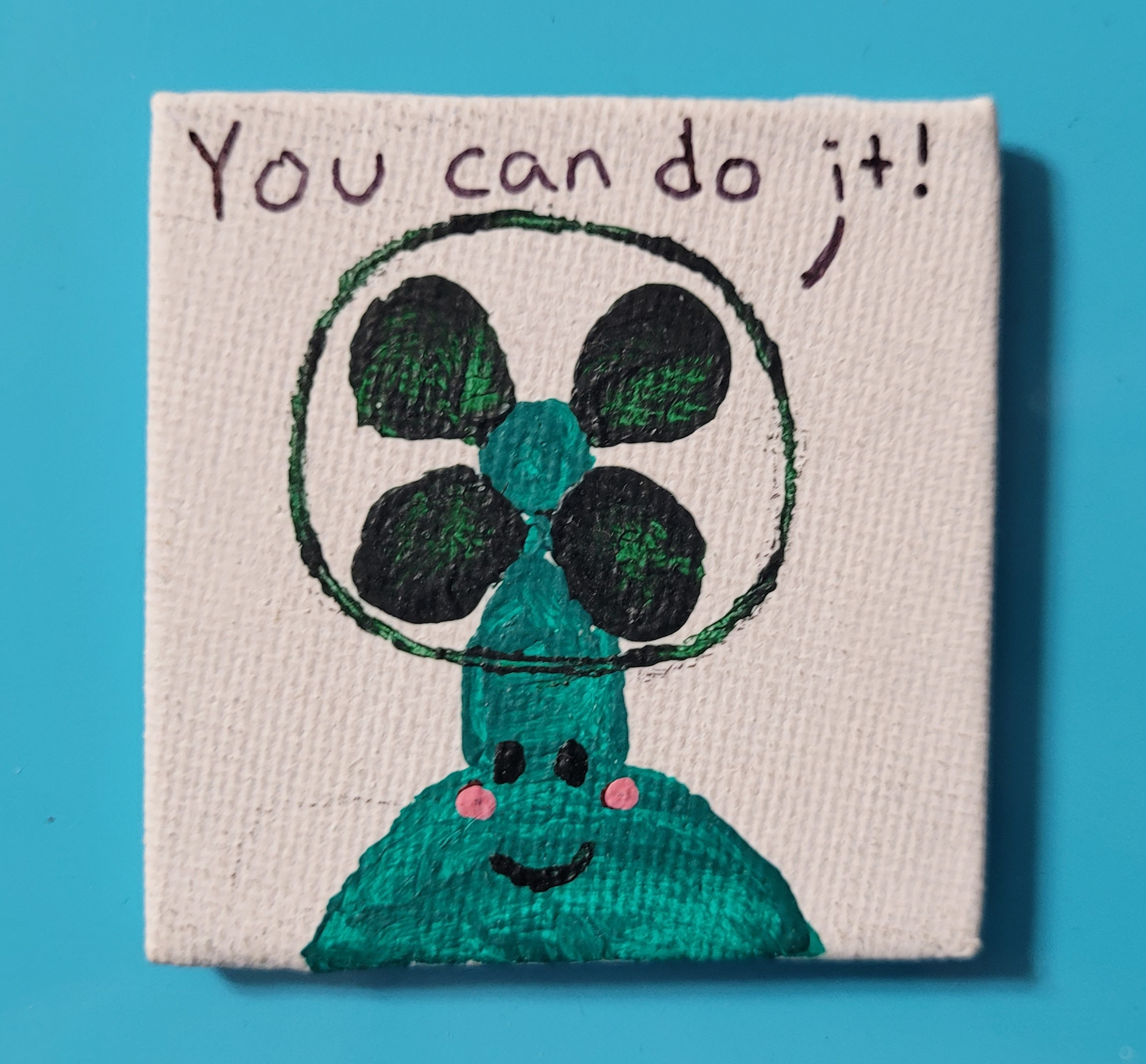 Tiny painting of your biggest fan. They're supporting you 100%. Hand painted with acrylic paint on a 2x2 canvas with magnetic backing.