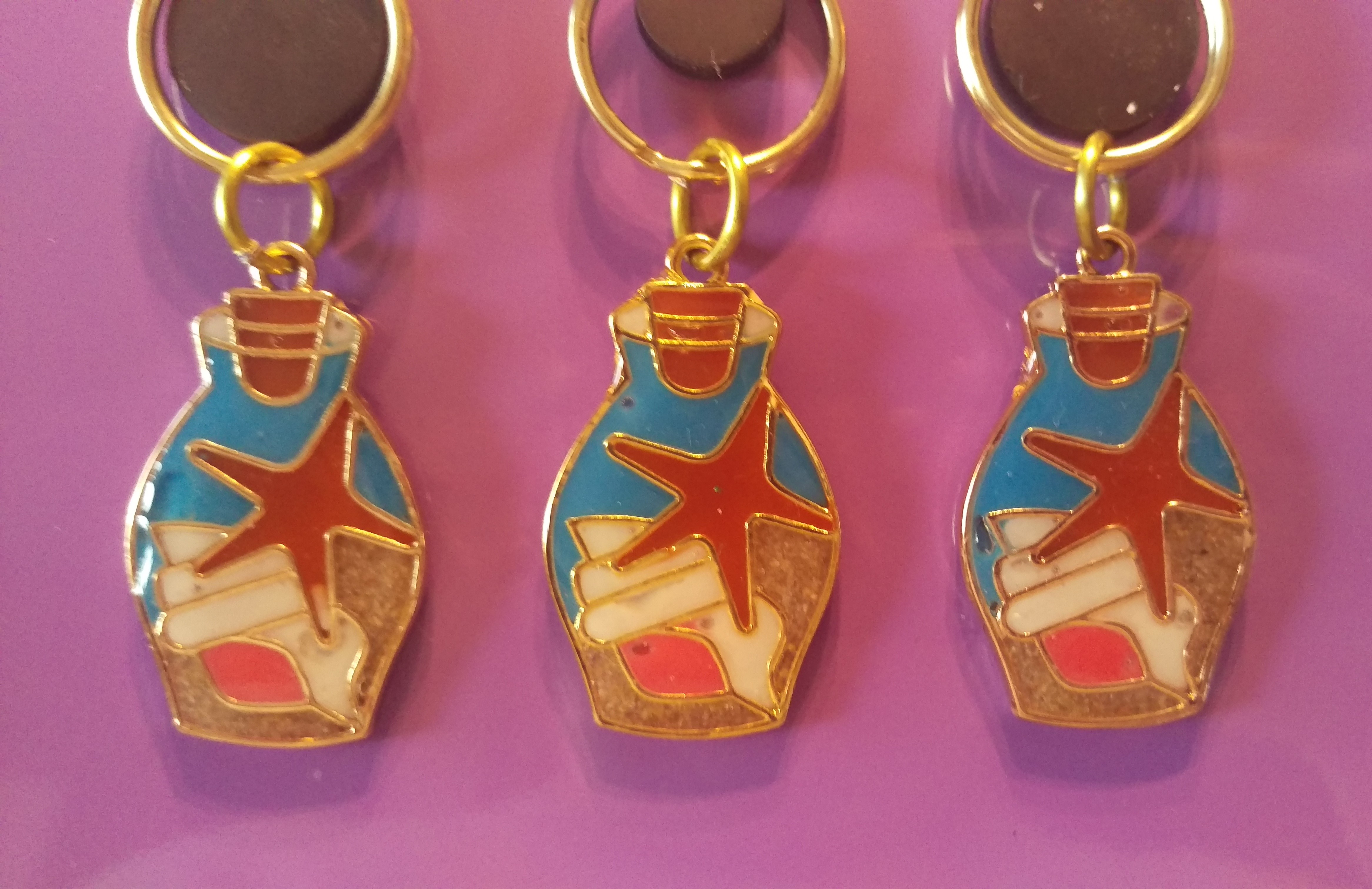 Can't get to the beach? Have the beach come to you. Pick up one of these fun keychains made with resin, sand from Rehoboth Bay, and metal findings.