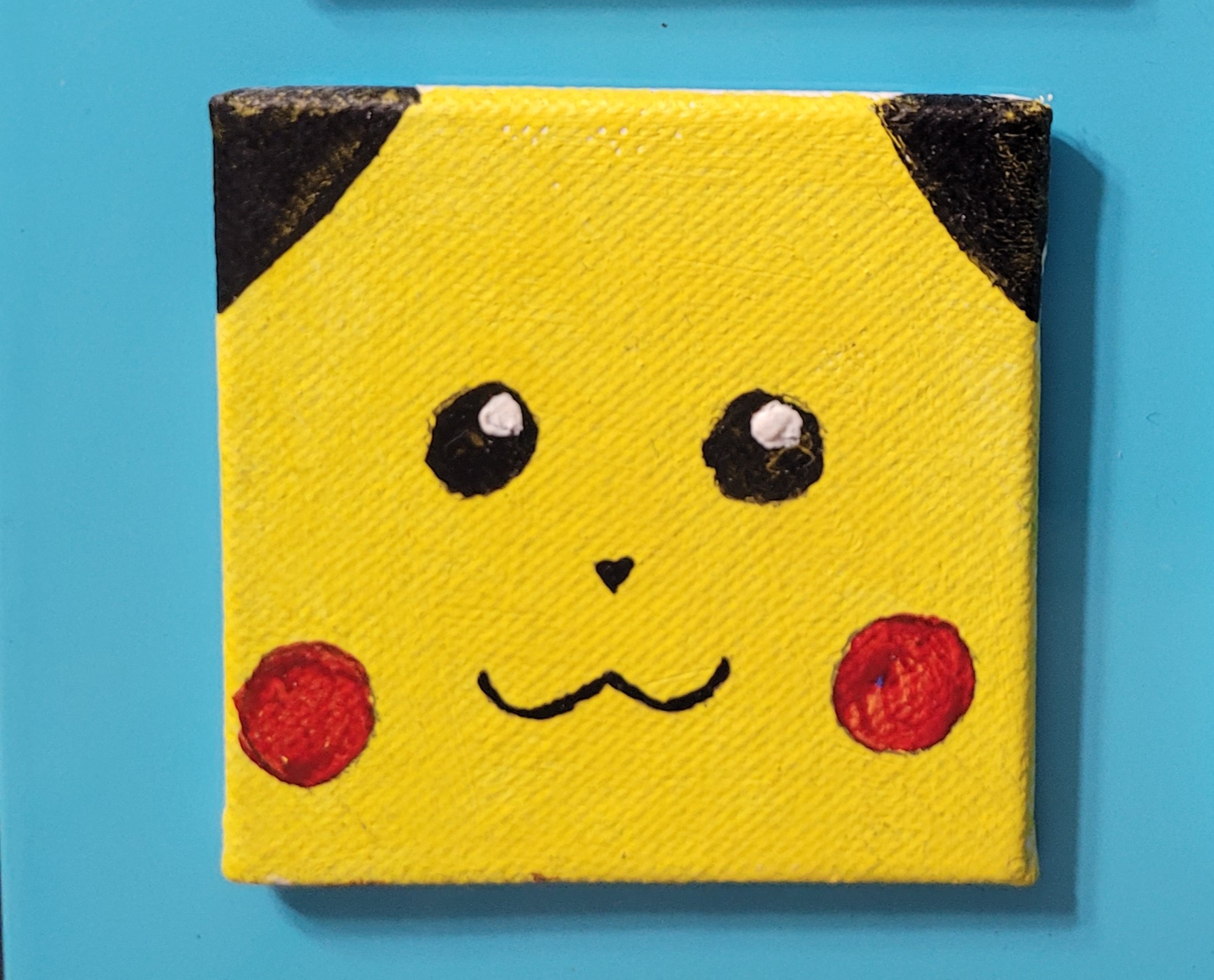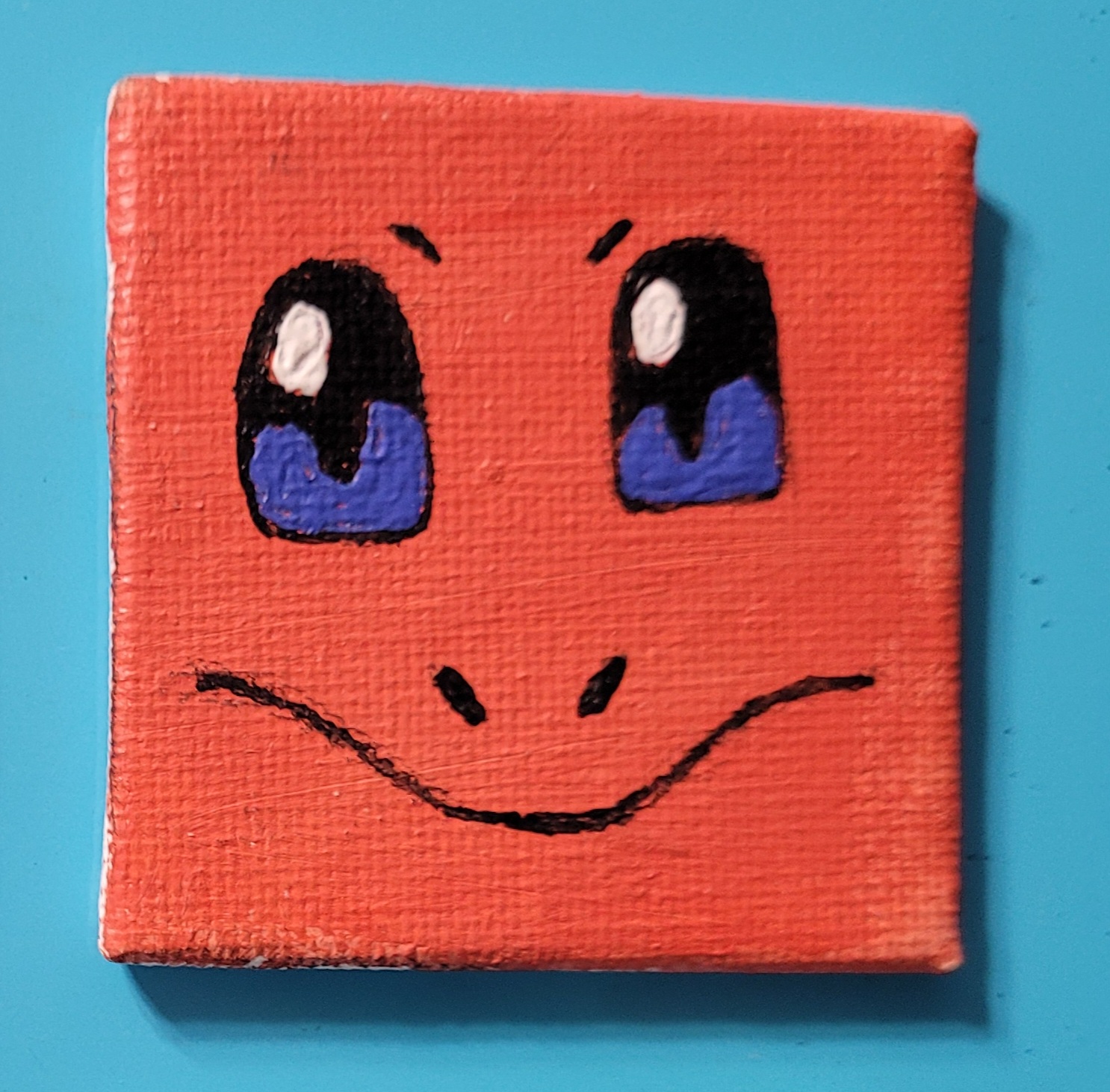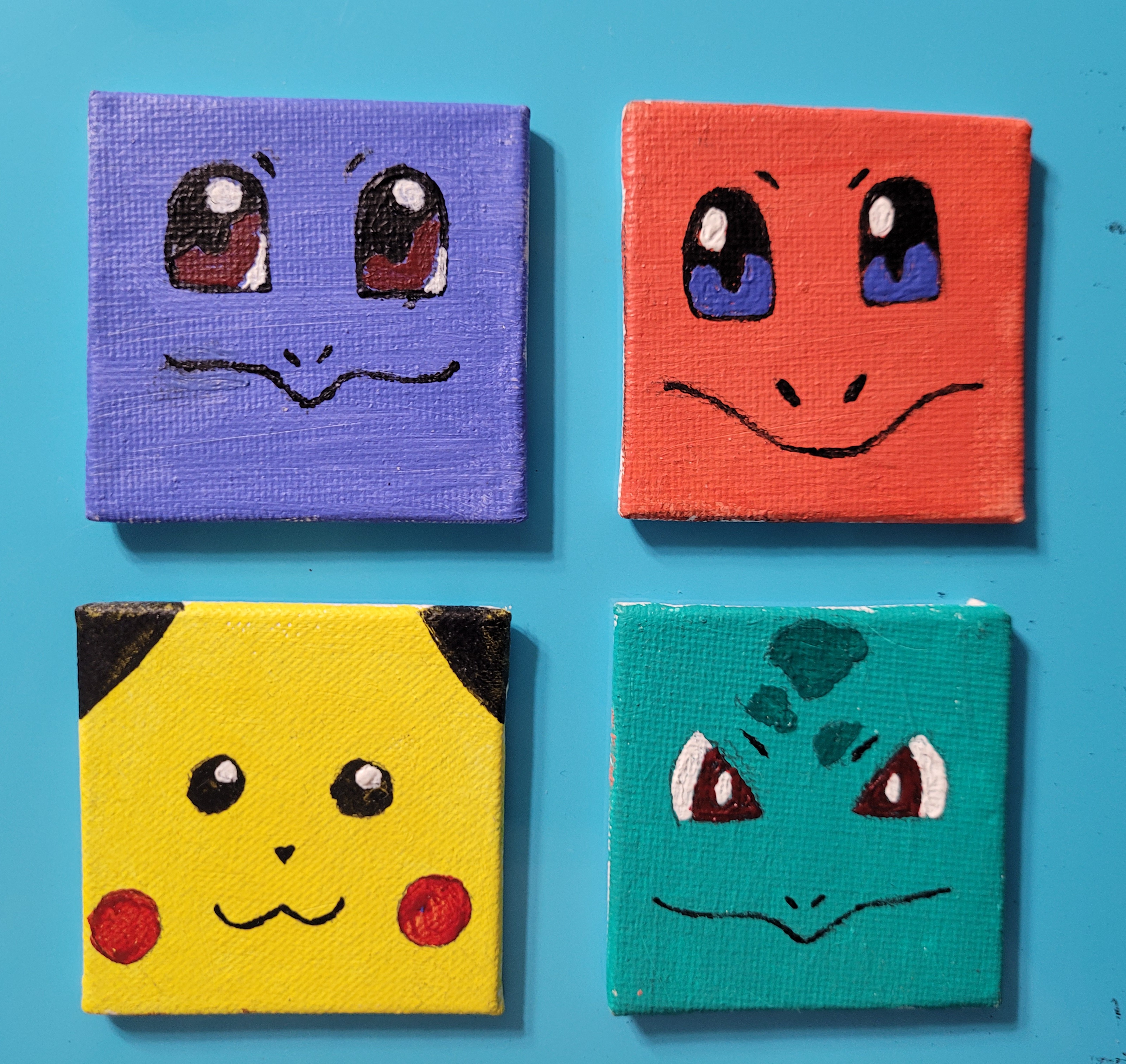 Set of 4 canvas magnets. Hand painted with acrylic paints depicting the core set of starters from a popular video game series. Each magnet measures 2x2inches.