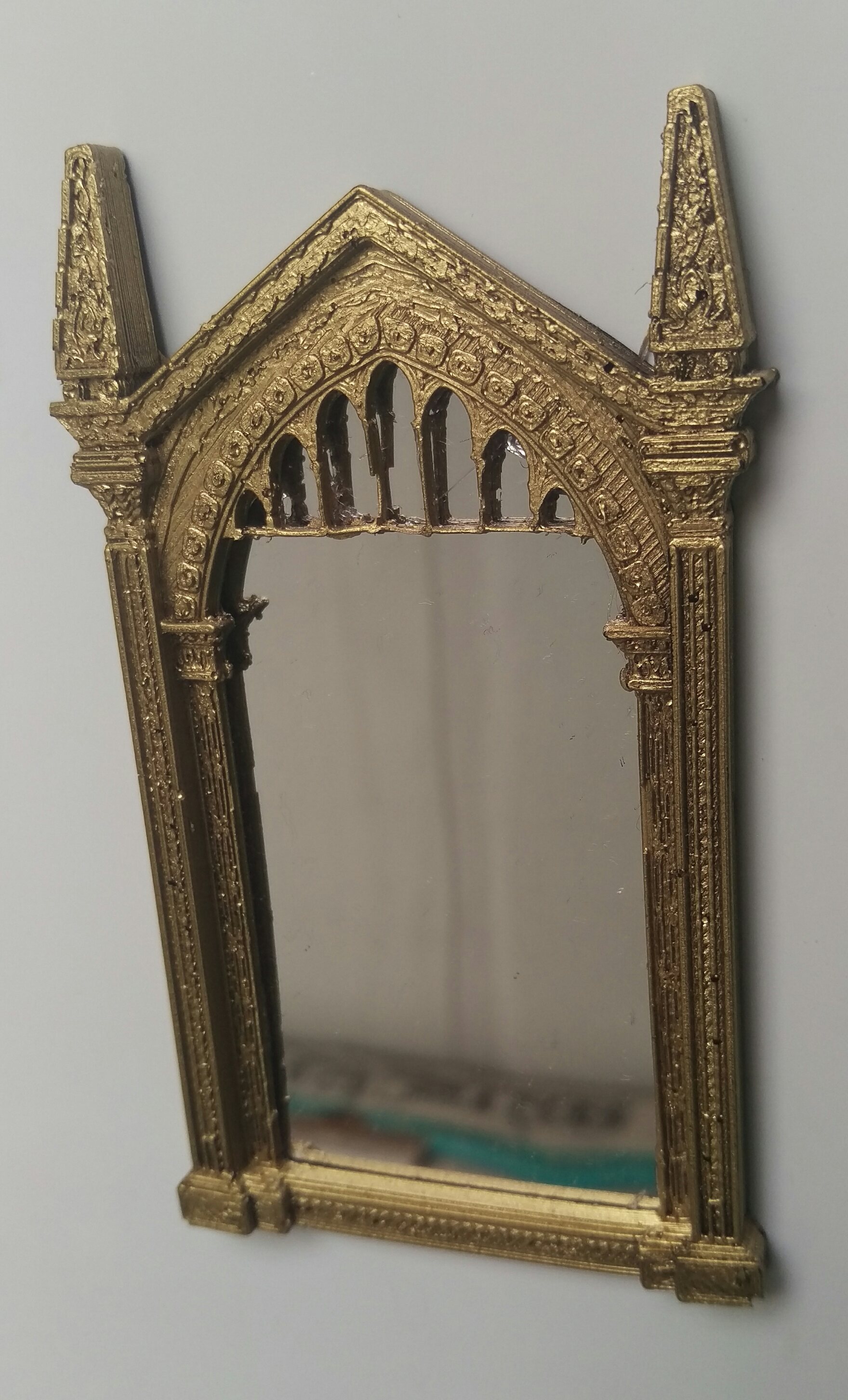 Magnets based off the Mirror of Erised Harry Potter movie design. Made from resin, plastic mirror sheet, magnet, and sealed with acrylic sealer.
