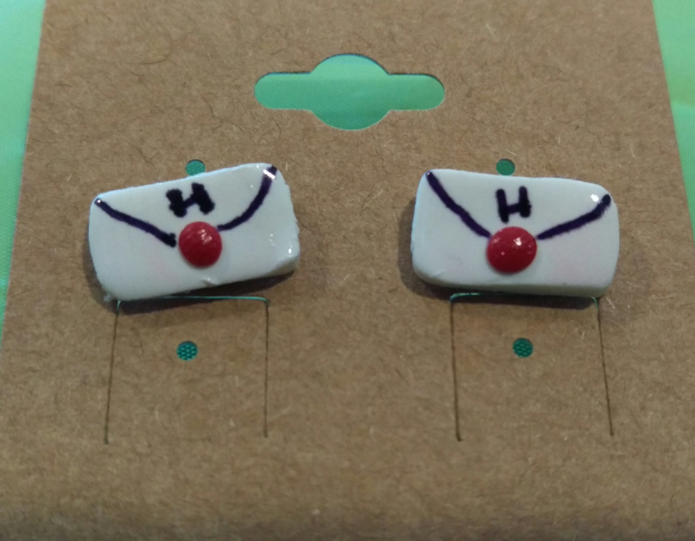 Handcrafted polymer clay Letter to Hogwarts stud earrings. Sealed with acrylic sealer with nickel free metal stud findings.