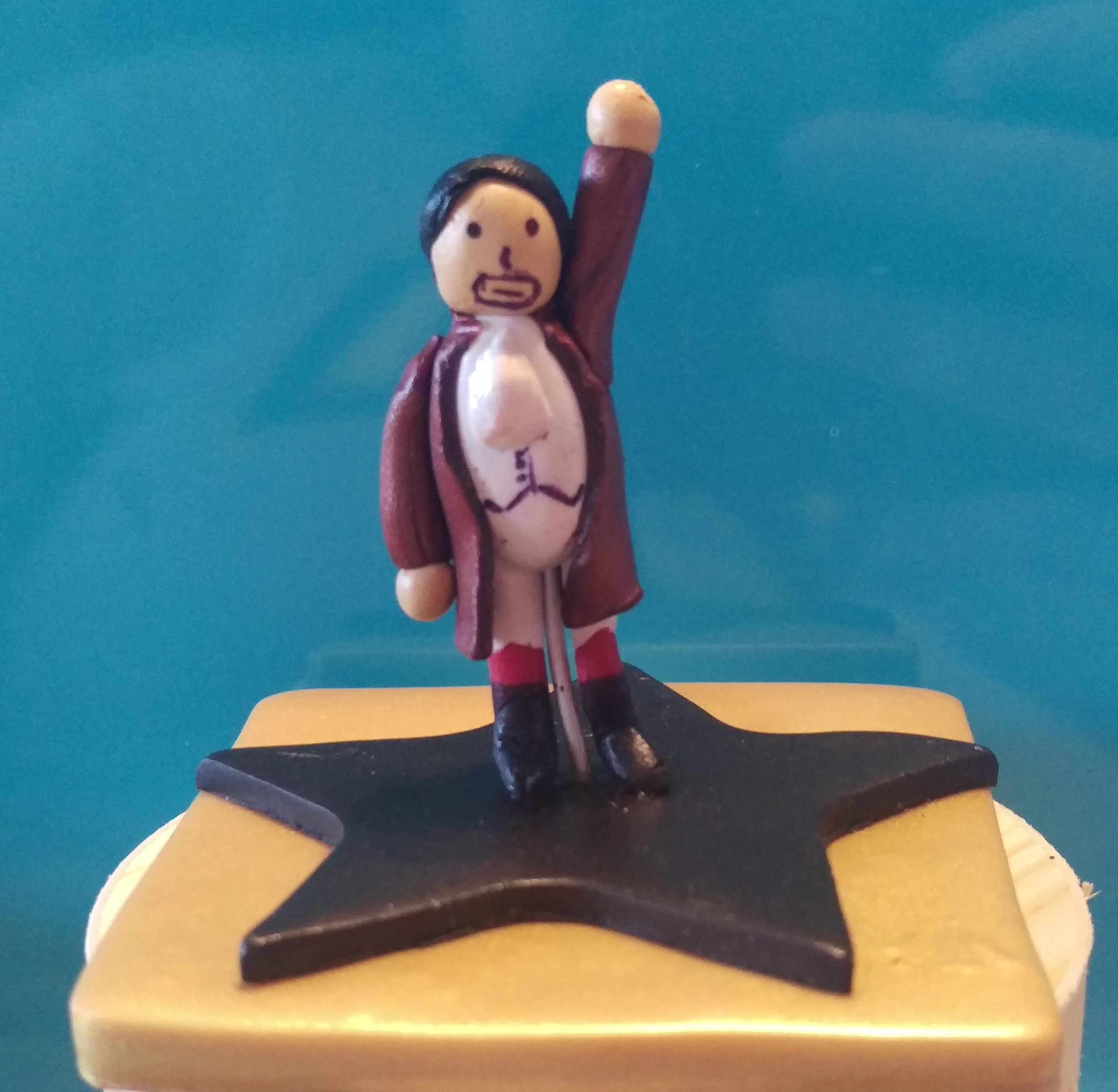 He is not throwing away his shot! Listing is for a polymer clay and metal Hamilton figurine. Base measures 2.5 x 2.5 inches, height is 2.25 inches.