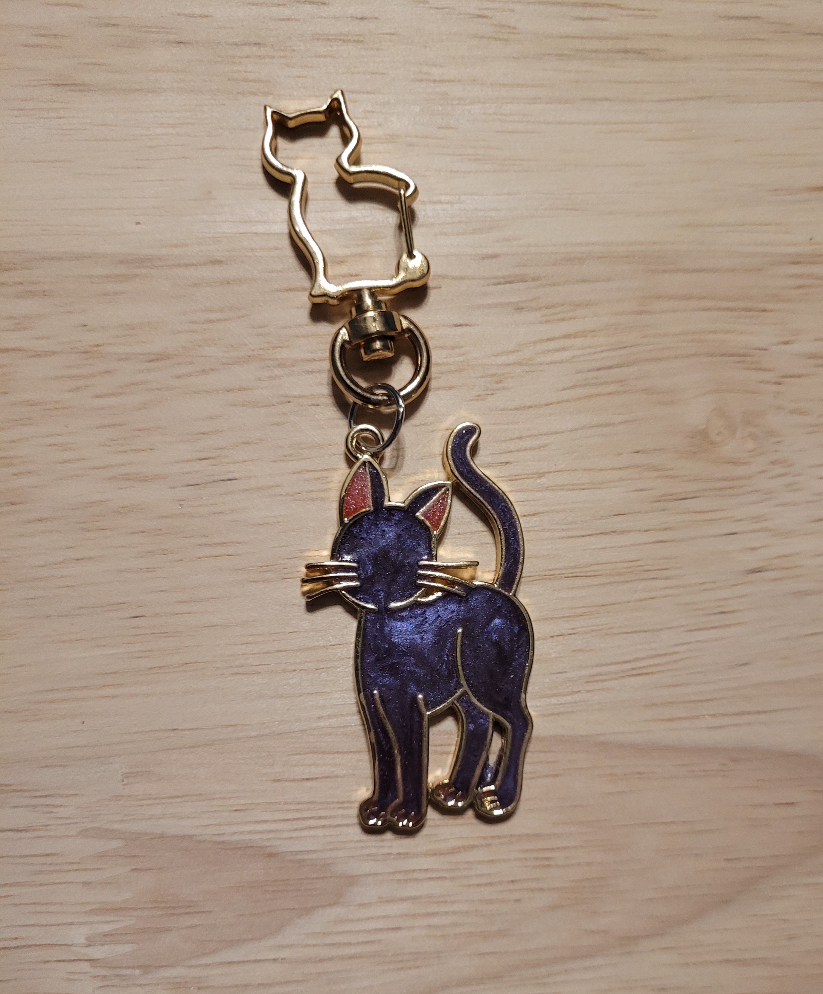 Magical purple colored cat keychain made with resin and metal.
