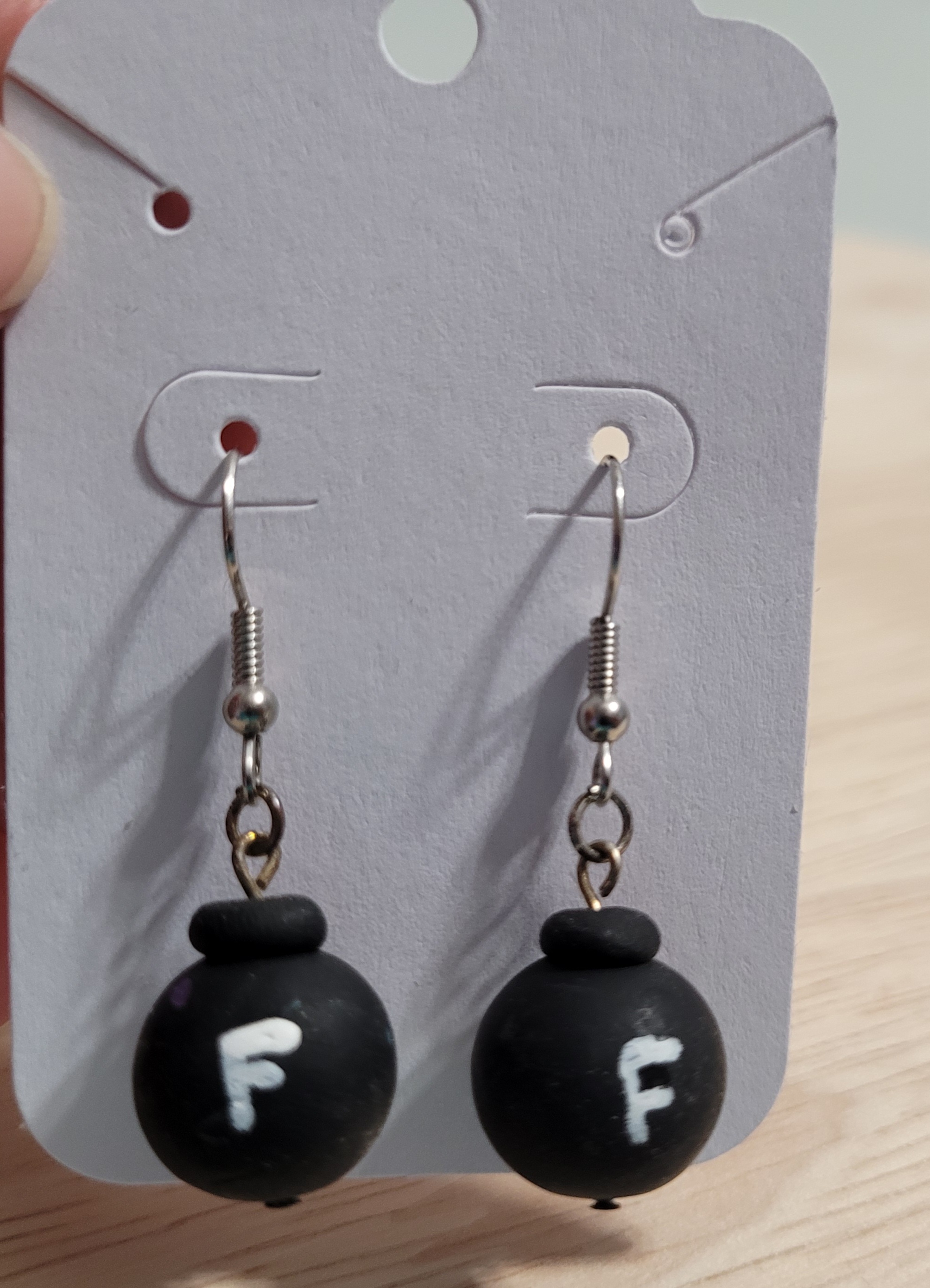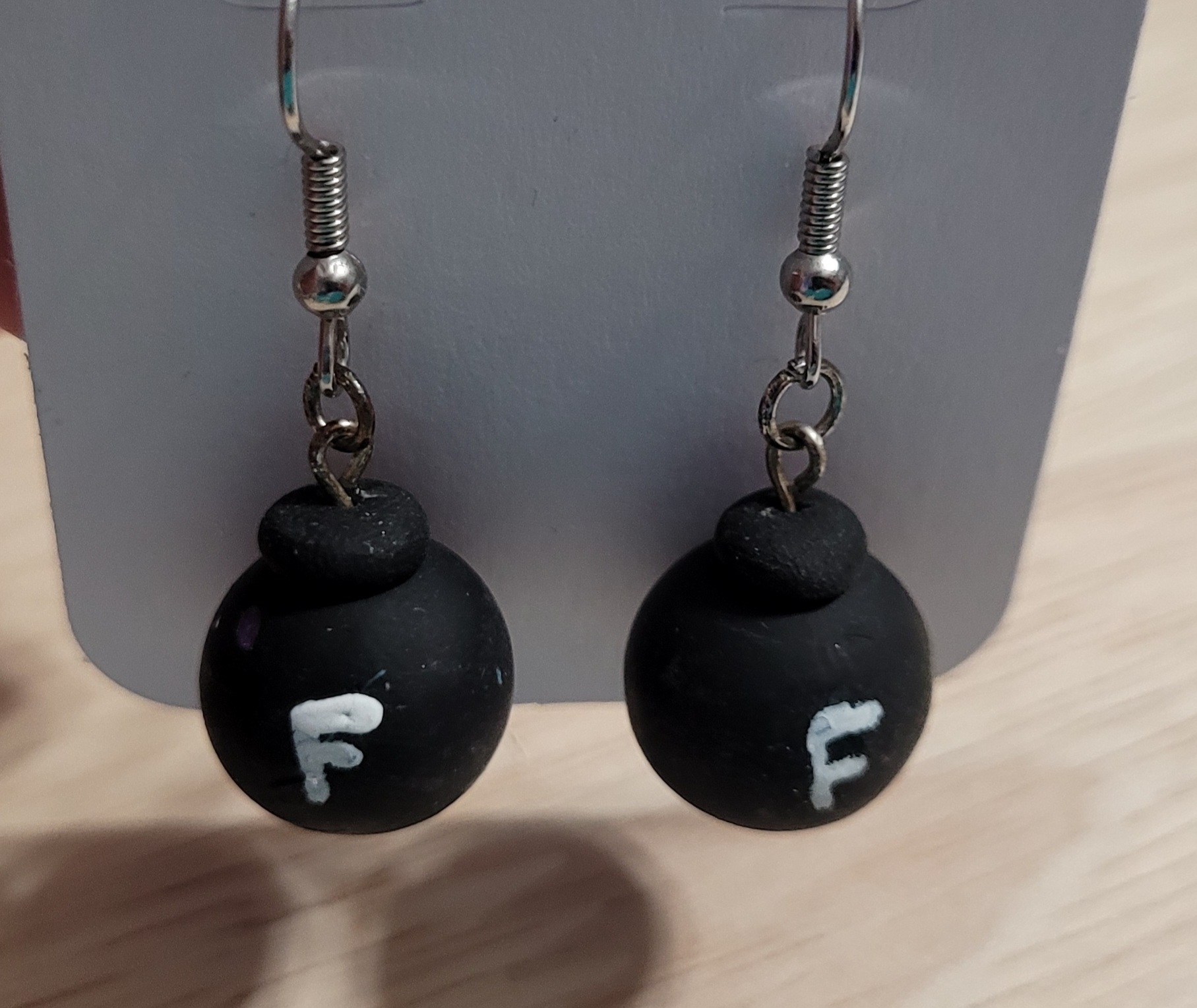 Want to let someone know how you feel but can't curse at work/other place you're not allowed to curse at? These handy F-b*mb earrings can get your point across. ^_~ Made with polymer clay, acrylic paint, and nickel free metal findings.