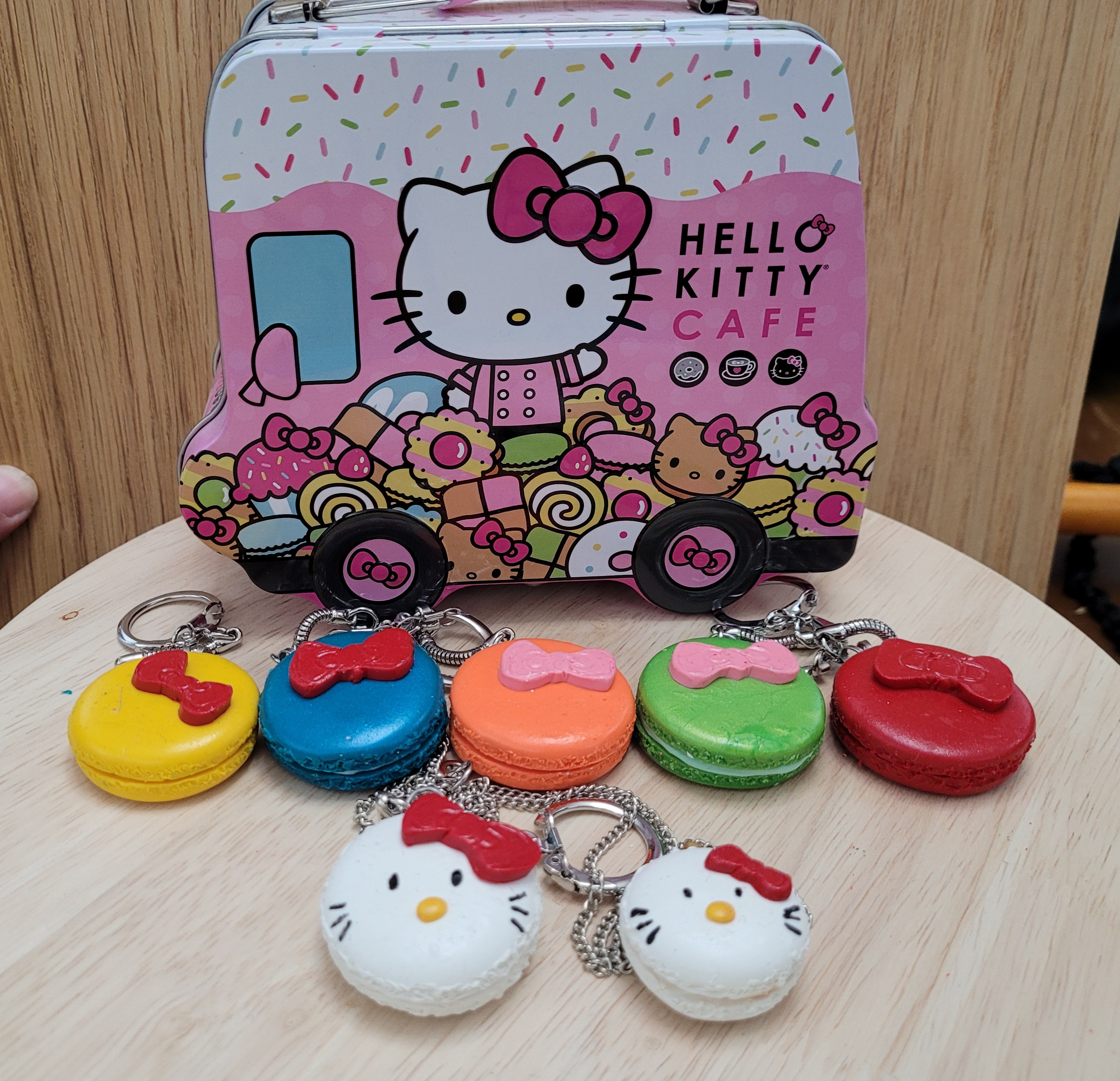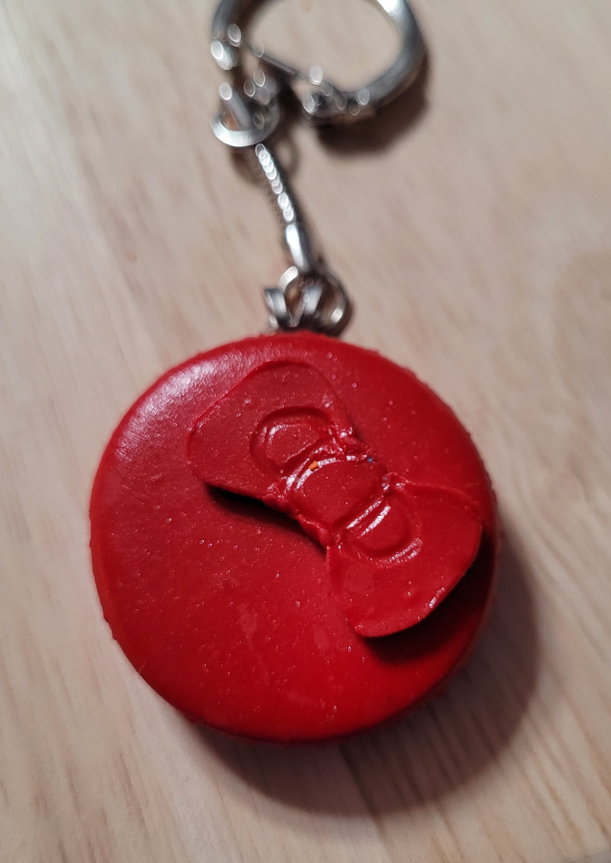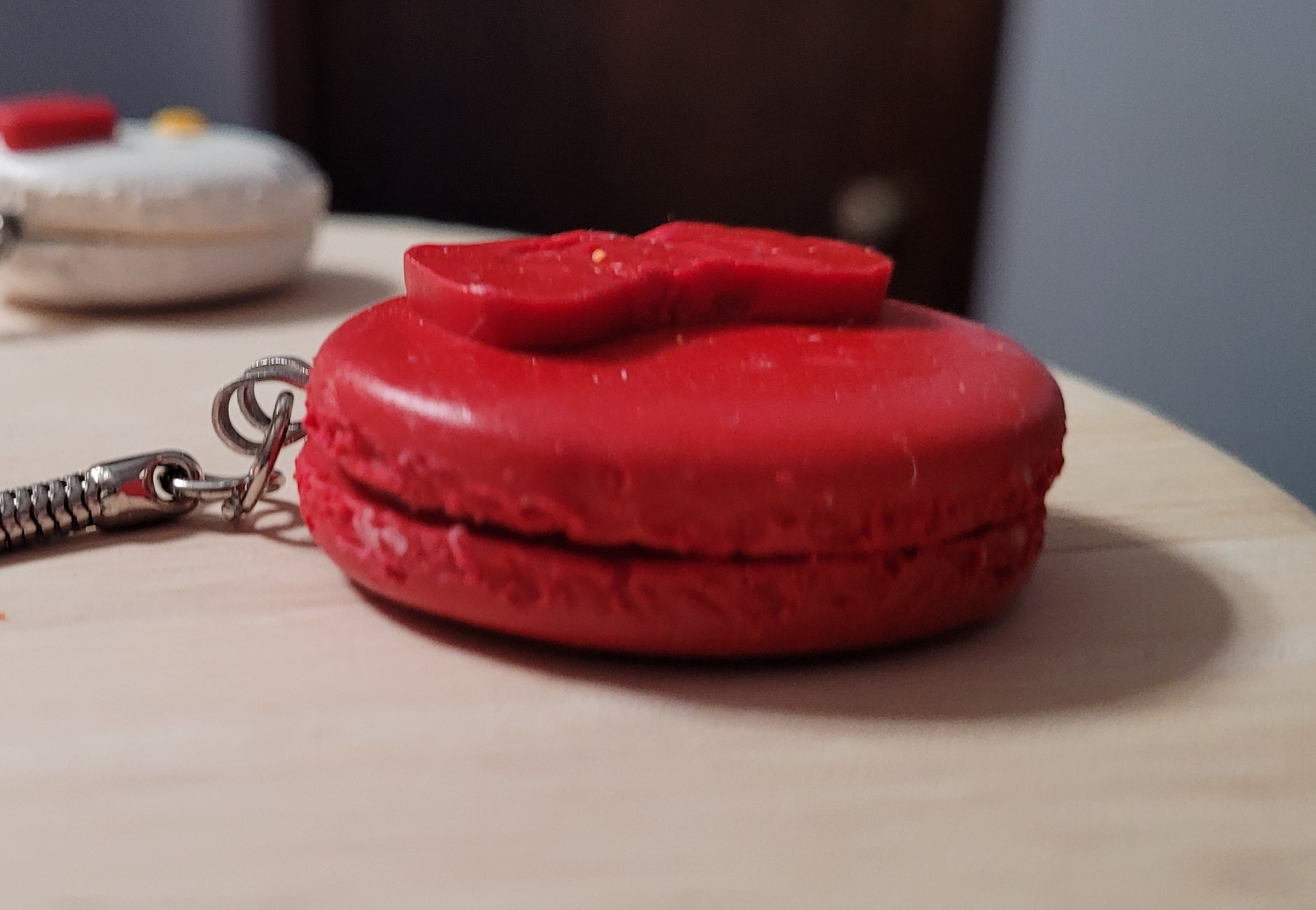 Listing is for the red macaron keychain only. Made with polymer clay, decoden whip/collage clay, and metal findings.
