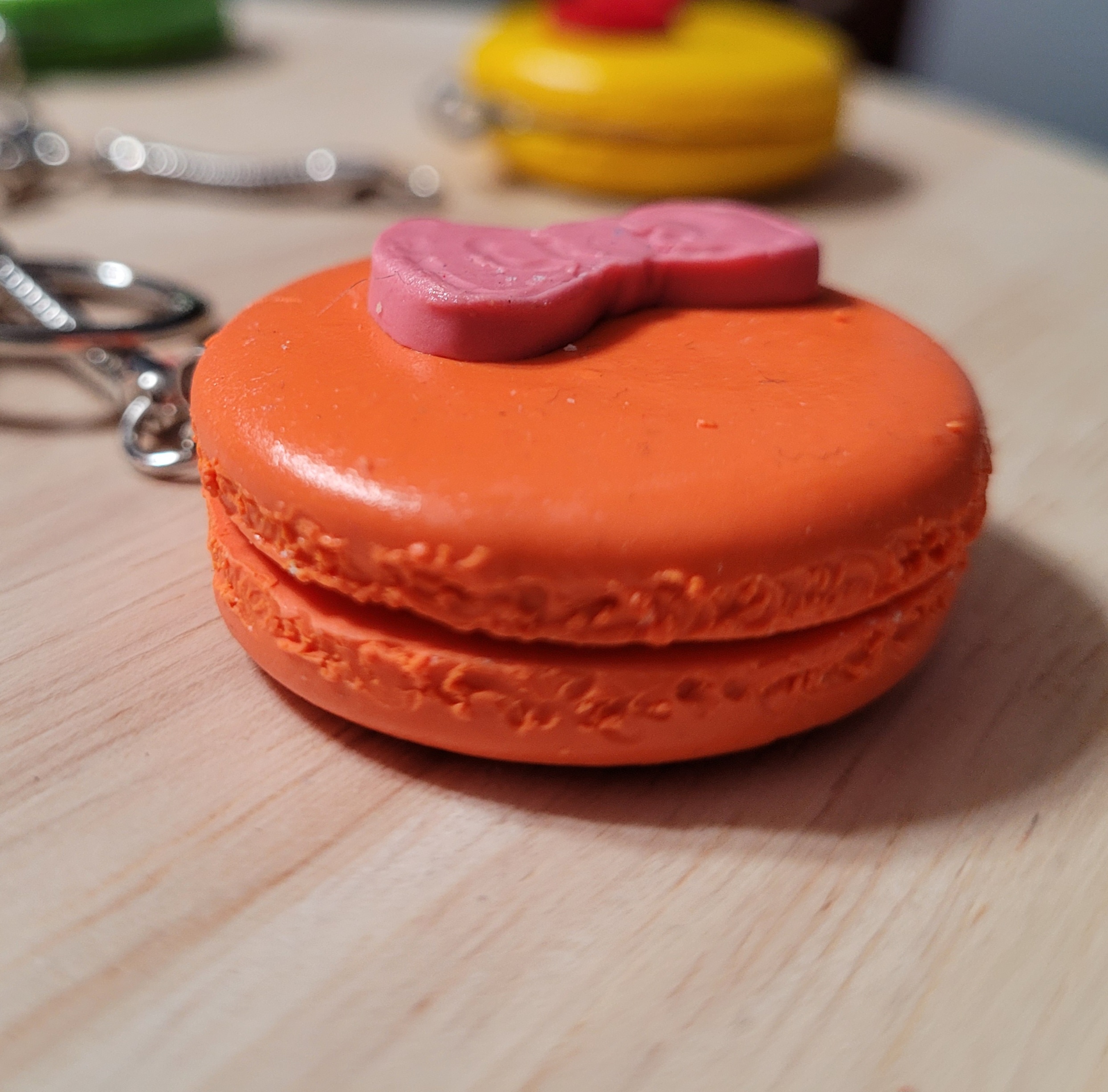 Listing is for the orange macaron keychain only. Made with polymer clay, decoden whip/collage clay, and metal findings.