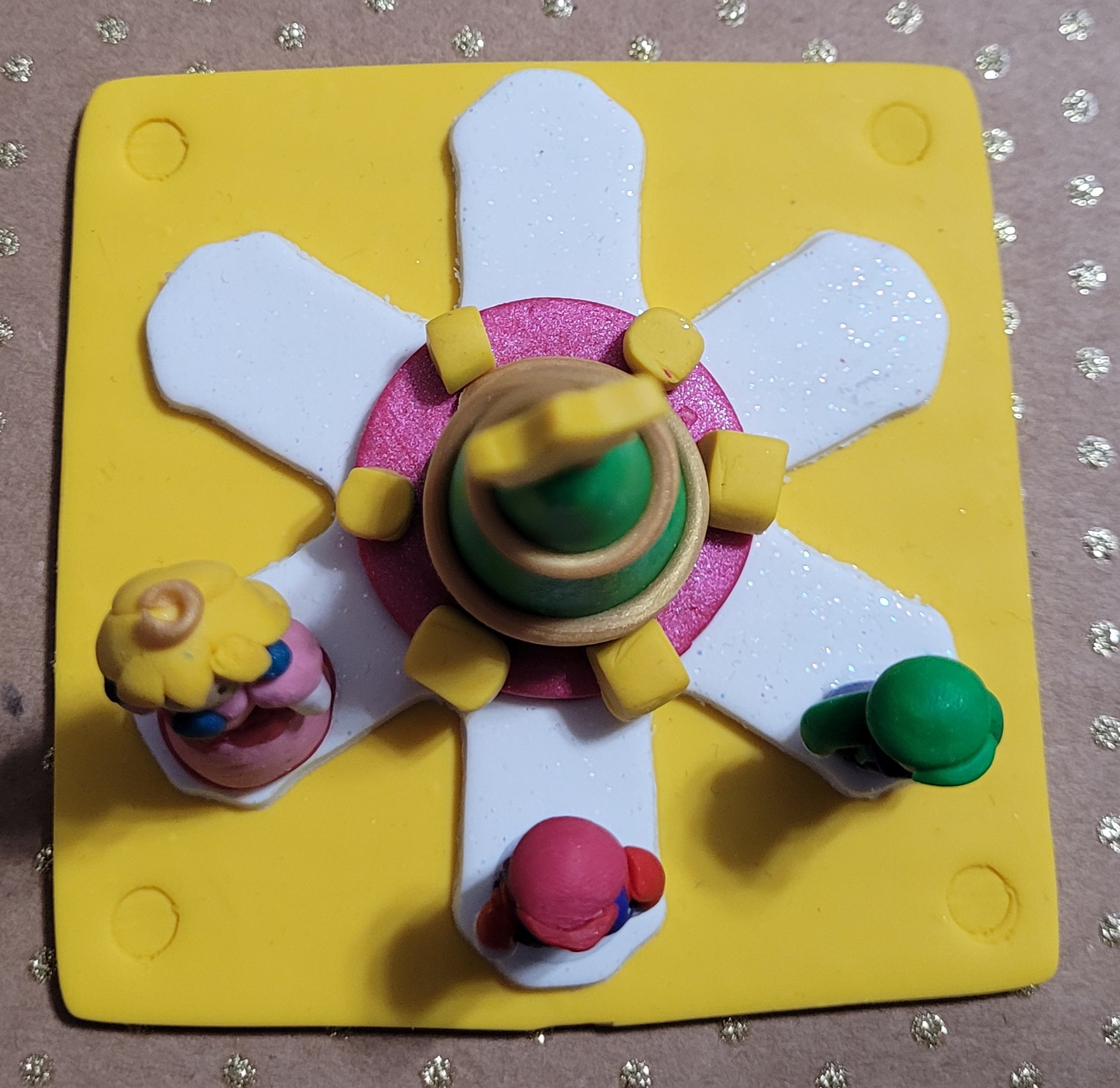 Merry Christmas from the Mushroom Kingdom! This delightful figure measures 2.5 in tall, and the base is 3×3 inches. Features Mario, Princess Peach and Luigi standing around a Christmas tree on a question block inspired base.