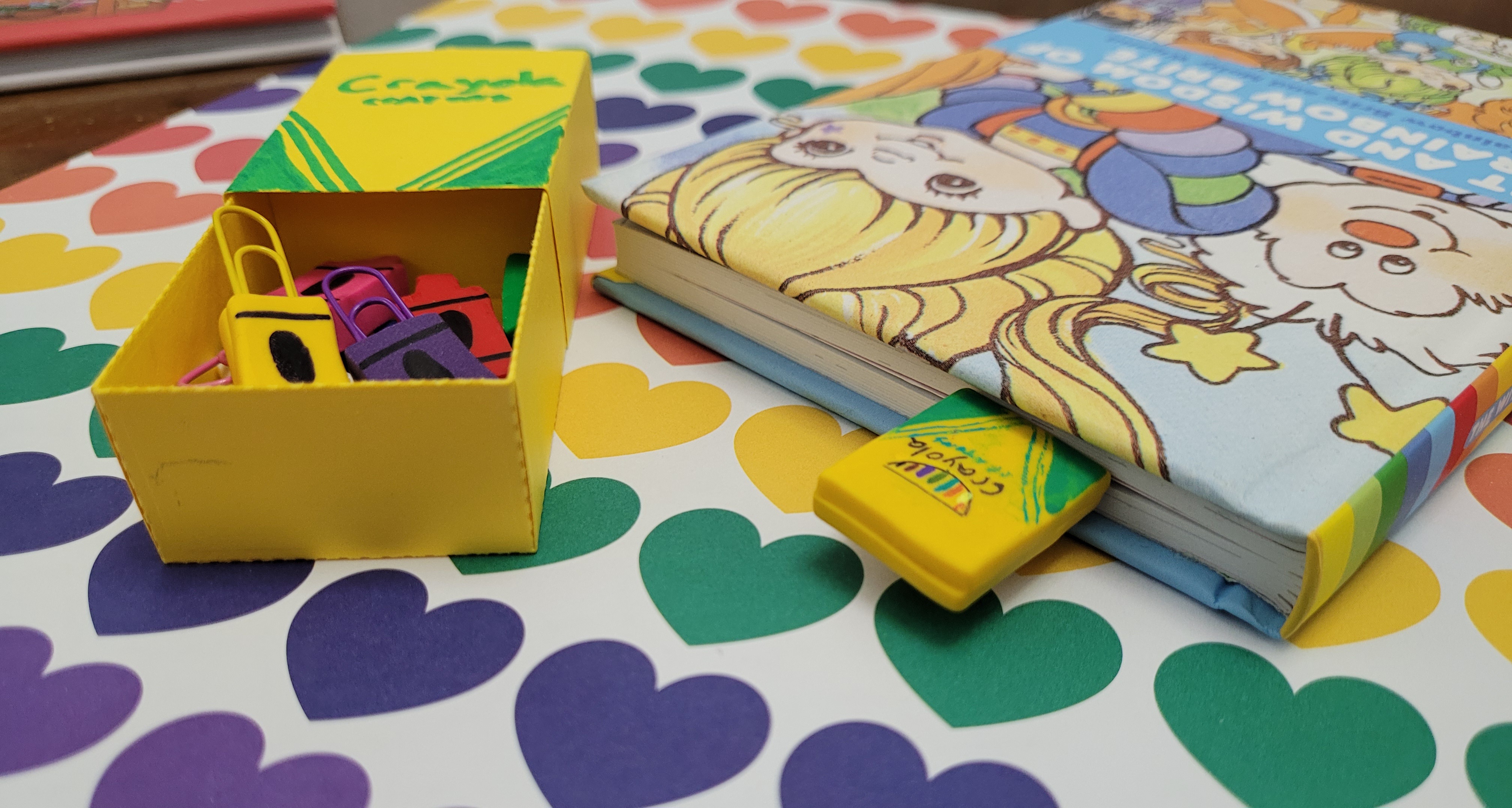 Have a colorful day! This set of 9 bookmarks comes in its own little Crayola style box. Each bookmark is made by hand with the clay part that sticks up out of the book measuring just under in inch tall. The colors were chosen to match the paperclips.